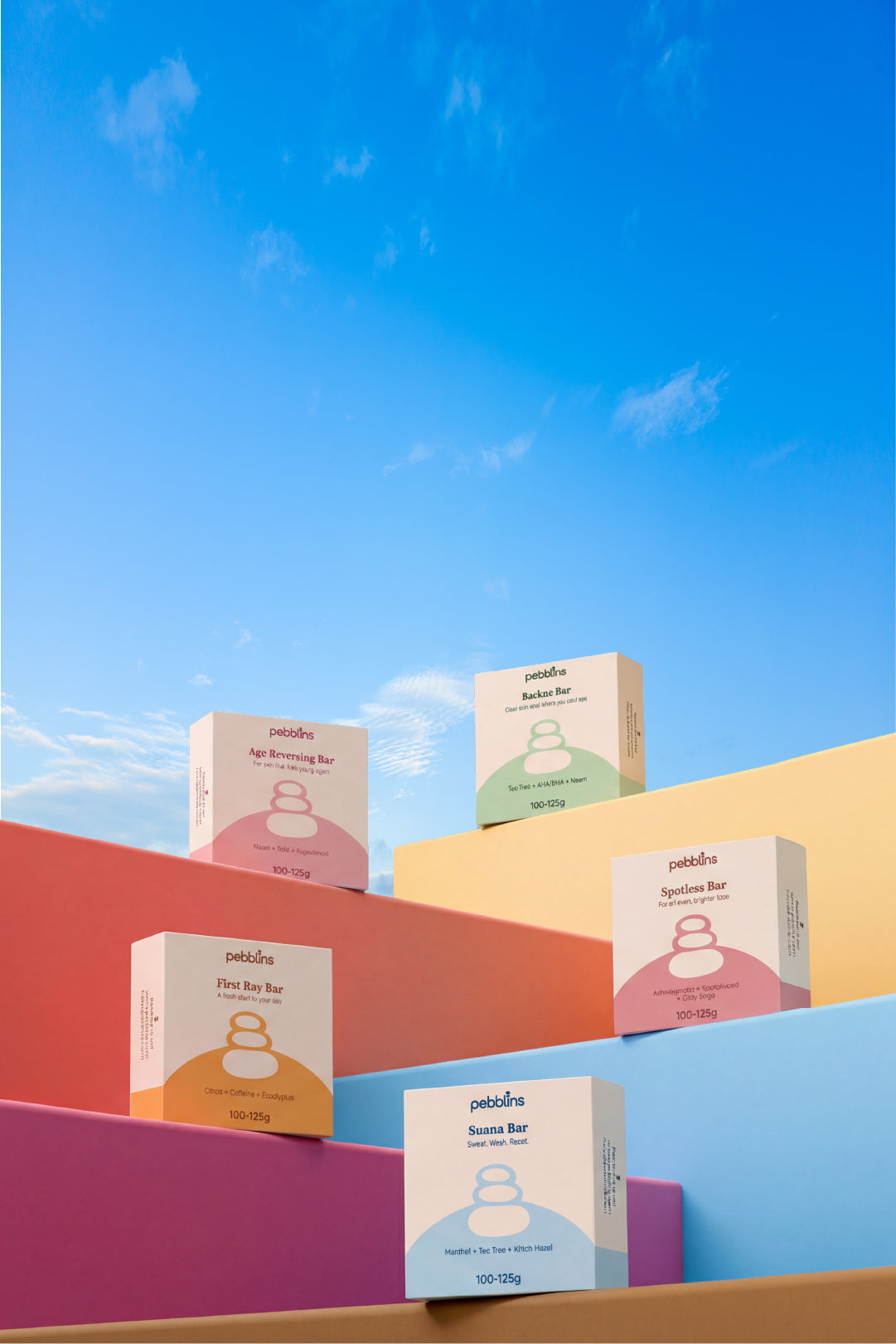 Pebblins bars are formulated with targeted botanical ingredients to address specific skin concerns while cleansing gently.