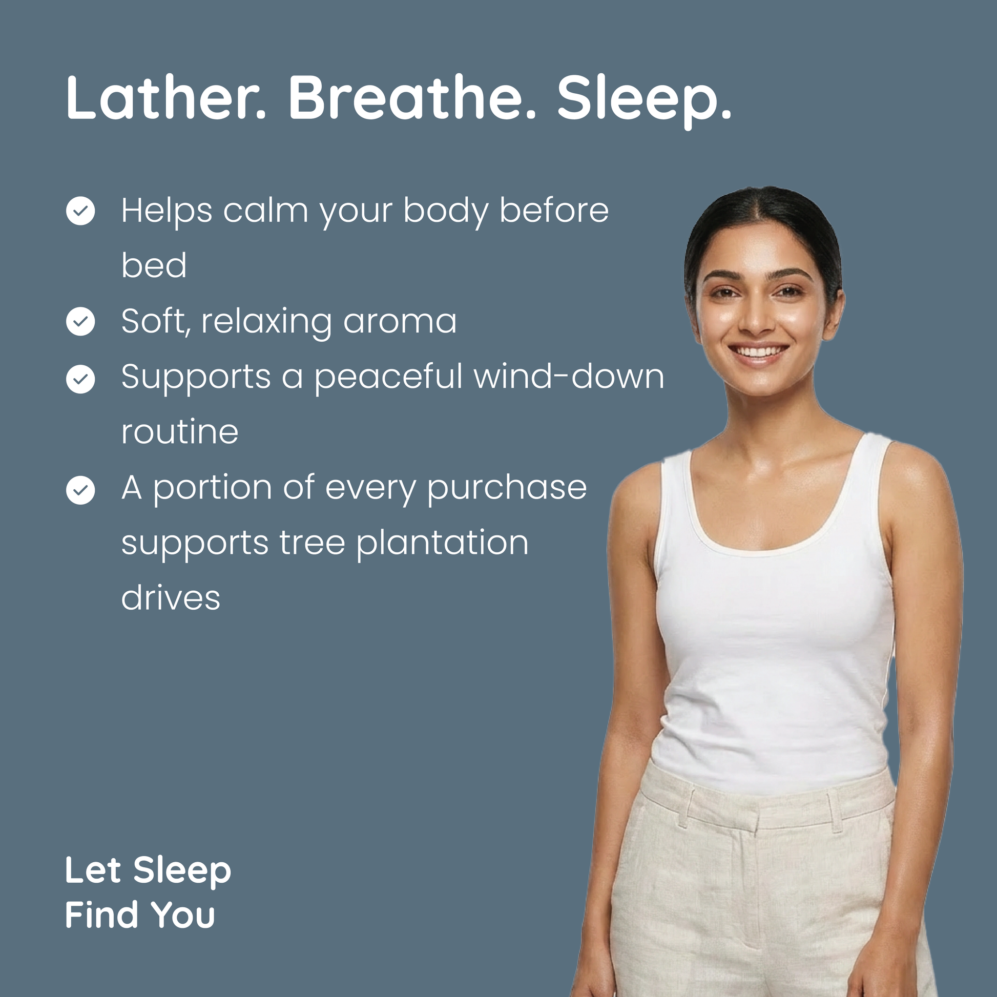 "The smell is so calming without being overpowering. I look forward to my evening shower now because I know it means sleep is coming. My husband even noticed I'm not tossing and turning anymore."