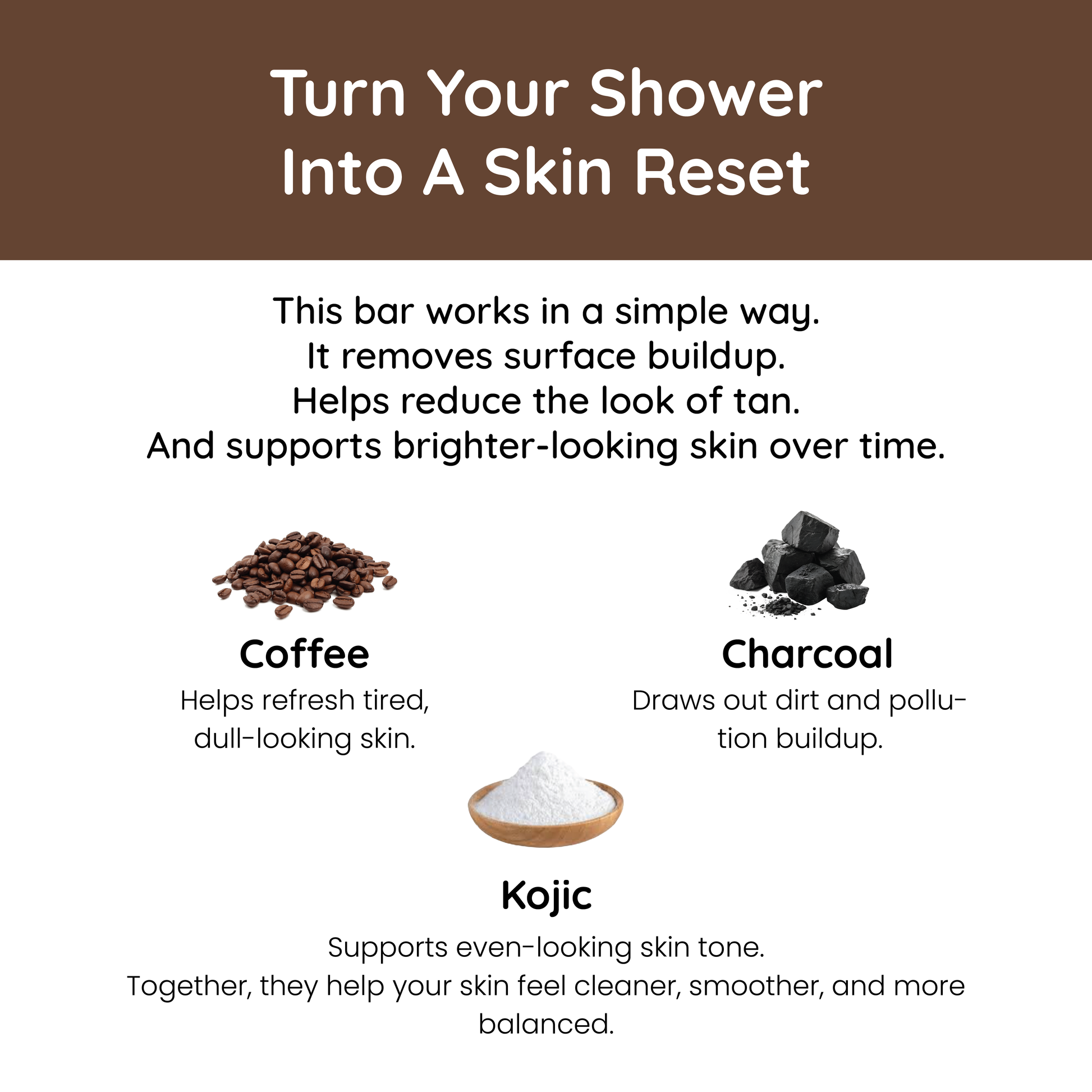 Experience a refreshing shower ritual, feel the gentle exfoliation of coffee granules, and step out with brighter, more confident skin after every wash.